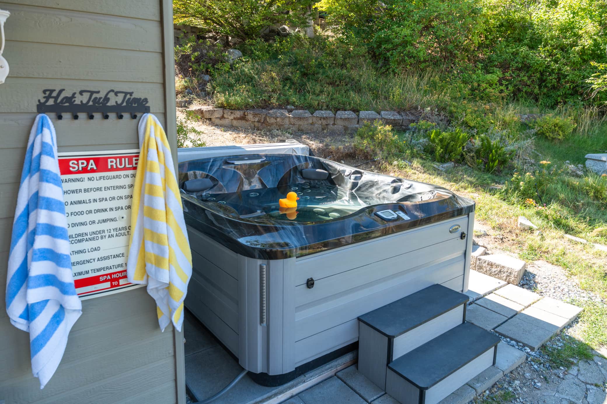 - Jacuzzi Hot Tub: New and situated with expansive lake views.